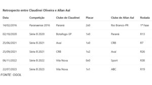 O duelo desta sexta-feira, 13 de junho, às 21h35 (horário de Brasília), entre Paysandu e Botafogo-SP, coloca frente a frente duas equipes em situações semelhantes no Brasileiro Série B, com técnico estreante para o Papão: Claudinei Oliveira, que assinou contrato para comandar o clube paraense. O confronto, no entanto, traz um histórico desfavorável para o técnico do Pantera: em seis encontros diretos ao longo das últimas temporadas, Allan Aal jamais conseguiu vencer Claudinei — foram quatro vitórias do treinador paraense e dois empates.