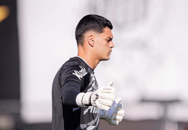 Foto: Raul Baretta/Santos FCO Santos liberou o goleiro Gabriel Brazão após a morte de seu pai. O clube prestou apoio ao jogador neste momento delicado, permitindo que ele se ausente das atividades para ficar com a família.