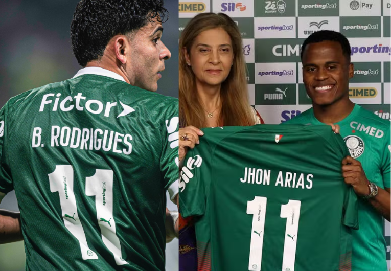 Foto: Divulgação/ Palmeiras A chegada de Jhon Arias ao Sociedade Esportiva Palmeiras provocou mudanças no elenco alviverde e pode influenciar diretamente o futuro de Bruno Rodrigues. O atacante abriu mão da camisa 11 para o reforço recém-contratado e passou a usar a 20, mas há a possibilidade de nem estrear com o novo número.