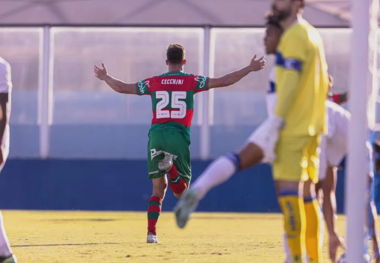 Foto: Victor Bessa/Portuguesa SAFAutor do gol da vitória da Portuguesa por 1 a 0 sobre o Água Santa, neste sábado (25), em Diadema, o volante Mateus Cecchini celebrou o momento após a partida. Titular pela primeira vez na Série D, o jogador foi decisivo no confronto direto pela liderança do grupo e destacou o peso do lance em sua trajetória no clube.