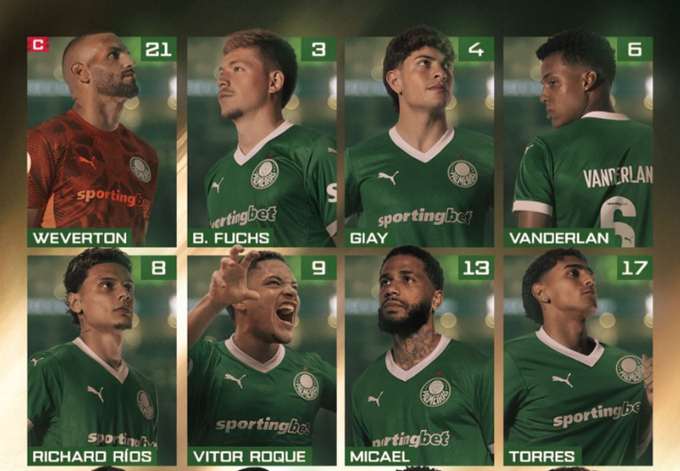 Palmeiras: Weverton; Giay, Micael, Bruno Fuchs e Vanderlan; Richard Rios, Emiliano Martínez e Estêvão; Allan, Facundo Torres e Vitor Roque. Treinador: Abel Ferreira.