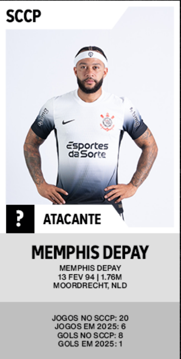Memphis Depay aparece sem numeração em material do clube. Foto: Reprodução/Corinthians