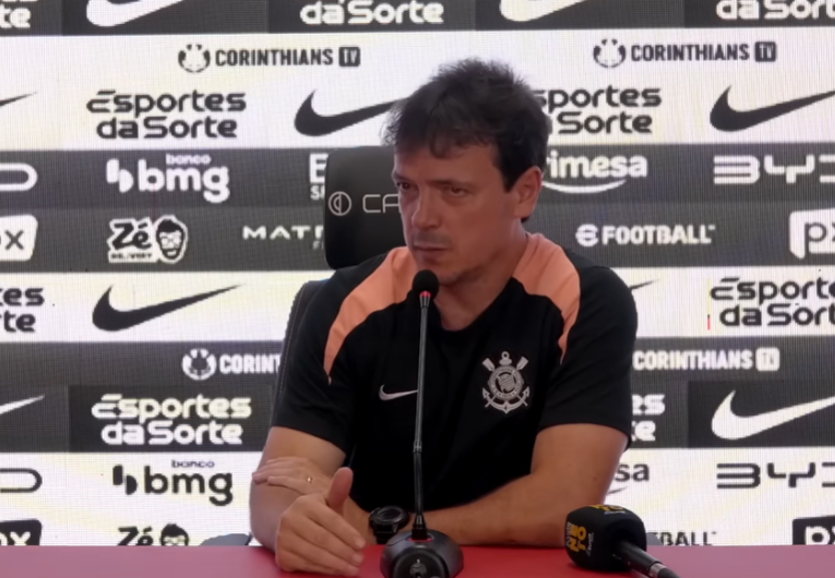 Foto: Reprodução/Corinthians Na noite deste sábado, o Corinthians empatou sem gols com o Vitória, fora de casa, pelo Campeonato Brasileiro, e viu a situação na tabela se complicar, entrando na zona de rebaixamento. Após a partida, o técnico Fernando Diniz reconheceu a atuação abaixo da equipe, mas destacou fatores como desgaste físico, sequência de jogos e dificuldades do gramado.