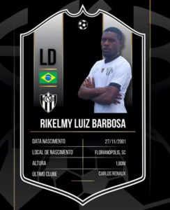 Rikelmy Barbosa:  Lateral de 22 anos, atuou por Curitibanos, Atlético Catarinense, Grêmio Sorriso-MT e Caçador-SC.