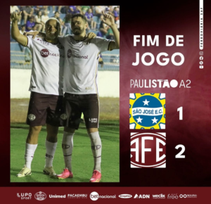 Foto: Reprodução/Futebol Paulista A Ferroviária está garantida nas quartas de final do Paulistão A2, na noite deste sábado, em pleno estádio Martins Pereira, a equipe venceu o São José de virada pelo placar de 2 a 1.