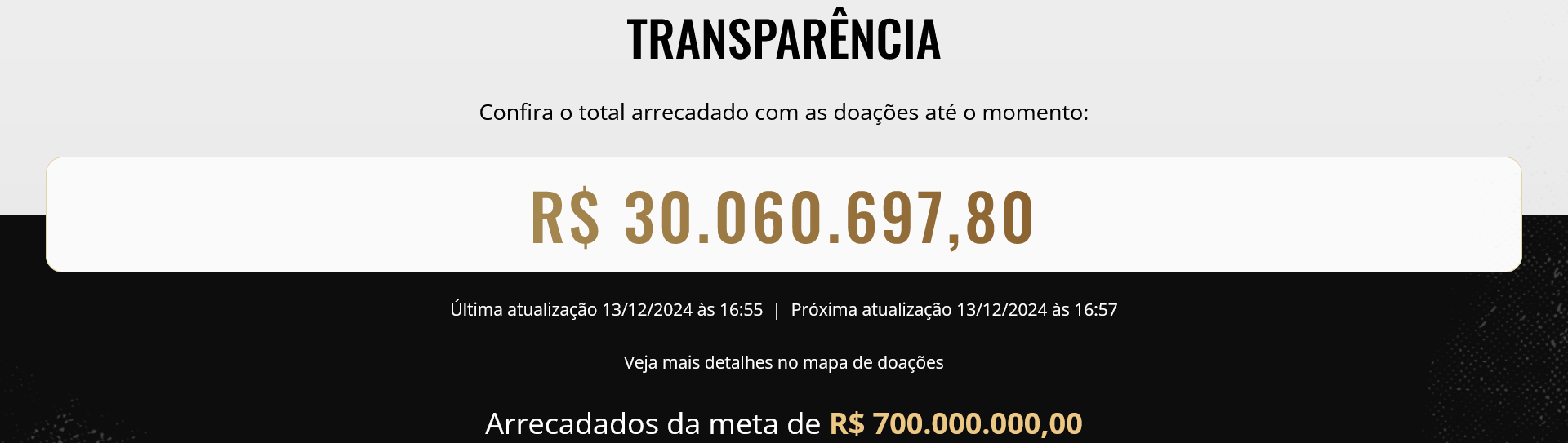 Valor total de doações realizadas. Foto: Reprodução/Doe Arena Corinthians
