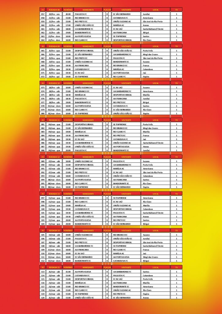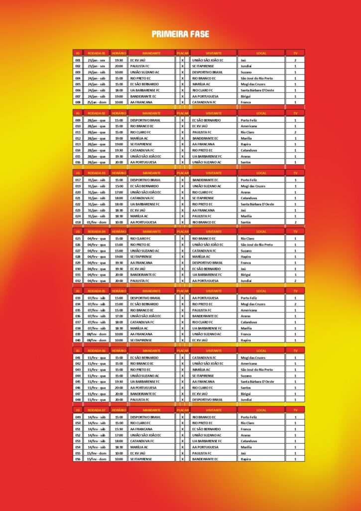 Nesta semana, a Federação Paulista de Futebol (FPF) divulgou os detalhes de todos os confrontos da primeira fase do Paulistão A3. O início da competição está marcado para o fim de semana dos dias 23, 24 e 25 de janeiro, com final prevista para ocorrer no dia 26 de abril.