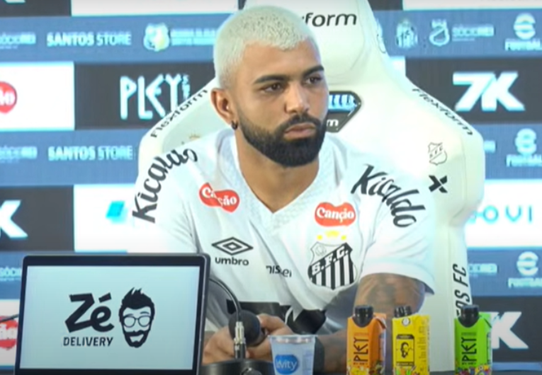 Foto: Reprodução/Santos TV Gabriel Barbosa foi apresentado oficialmente nesta segunda-feira, 5 de janeiro, como novo reforço do Santos. Emprestado pelo Cruzeiro até o fim da temporada, o atacante retorna ao clube após sete anos e chega para atuar ao lado de Neymar. O jogador afirmou que já tinha o desejo de voltar desde o ano passado, disse estar pronto para estrear no próximo sábado, contra o Novorizontino, pelo Paulistão, e minimizou a discussão com um torcedor na Vila Belmiro quando ainda defendia o time mineiro.