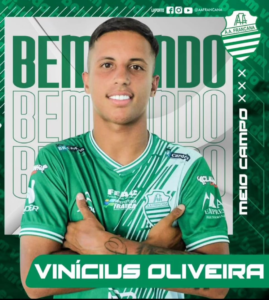 Além disso, o clube também divulgou a contratação do meia e volante Vinícius Oliveira, de 22 anos, que estava no União São João, onde foi campeão da Segunda Divisão do Campeonato Paulista.