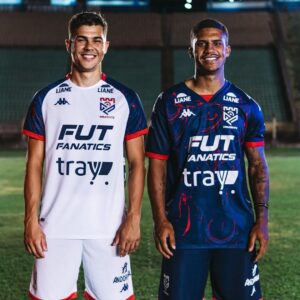 A nova camisa reserva é branca e traz os ombros e mangas azuis, com o mesmos detalhes vermelhos, vistos na principal.