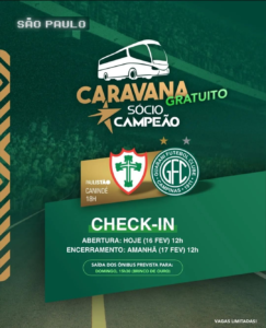 As vagas nos ônibus são limitadas. Os ingressos da partida estarão disponíveis na bilheteria do Canindé.