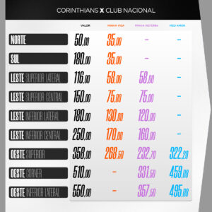 O jogo está marcado para terça-feira que vem (09) às 19h, na Neo Química Arena, com capacidade para 48.000 torcedores.