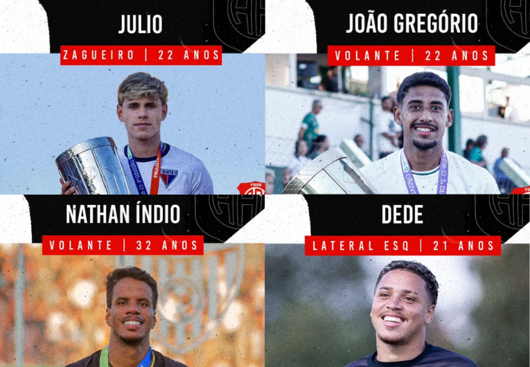 Fotos: Divulgação/Inter de BebedouroA Inter de Bebedouro começou a se movimentar no mercado e anunciou seus primeiros reforços para a disputa do Campeonato Paulista da Série A4 de 2026. O clube confirmou as chegadas do volante Nathan Índio, do também volante João Gregório e do lateral-esquerdo Dedé Fernandes, todos com passagem recente por times do interior paulista.