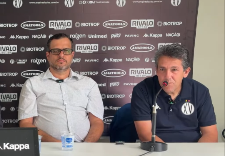 Durante a coletiva, o presidente Matheus Buonassi exaltou o currículo do treinador e reforçou a confiança da diretoria.