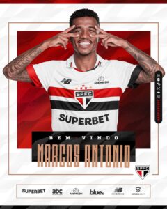 O São Paulo anunciou nesta terça-feira a contratação do meio-campista Marcos Antônio. O jogador de 24 anos, que pertence à Lazio, da Itália, chega por empréstimo de um ano, válido até 30 de junho de 2025.