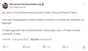 Nas redes sociais, a possível vinda de Balotelli ao Corinthians gerou diversas reações dos torcedores, especialmente lembrando sua participação na Copa do Mundo de 2014 pela seleção italiana.