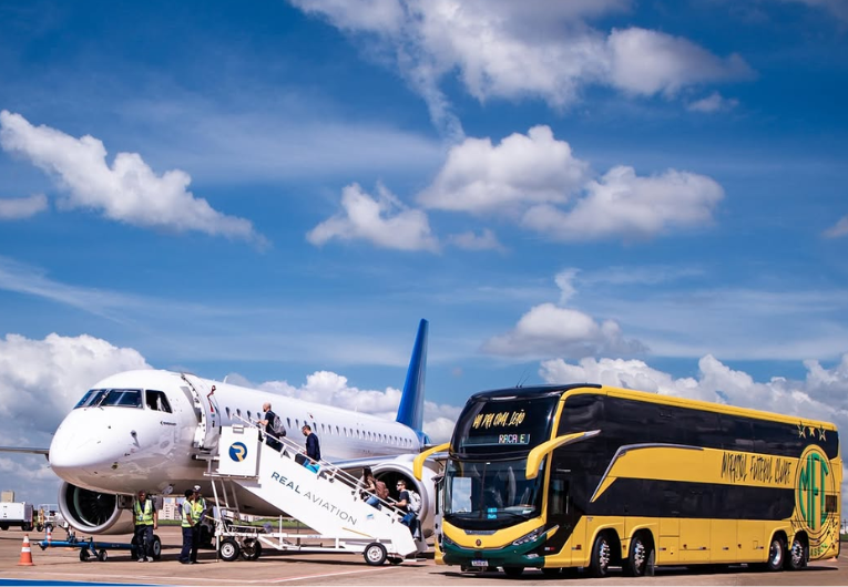 O voo partiu na tarde de domingo do aeroporto de São José do Rio Preto, cidade localizada a cerca de 20 minutos de Mirassol. O Leão fretou uma aeronave da Placar, empresa ligada à presidente do Palmeiras, Leila Pereira, para a operação que marcou o primeiro deslocamento internacional de um time que, em 2019, sequer disputava divisão nacional.
