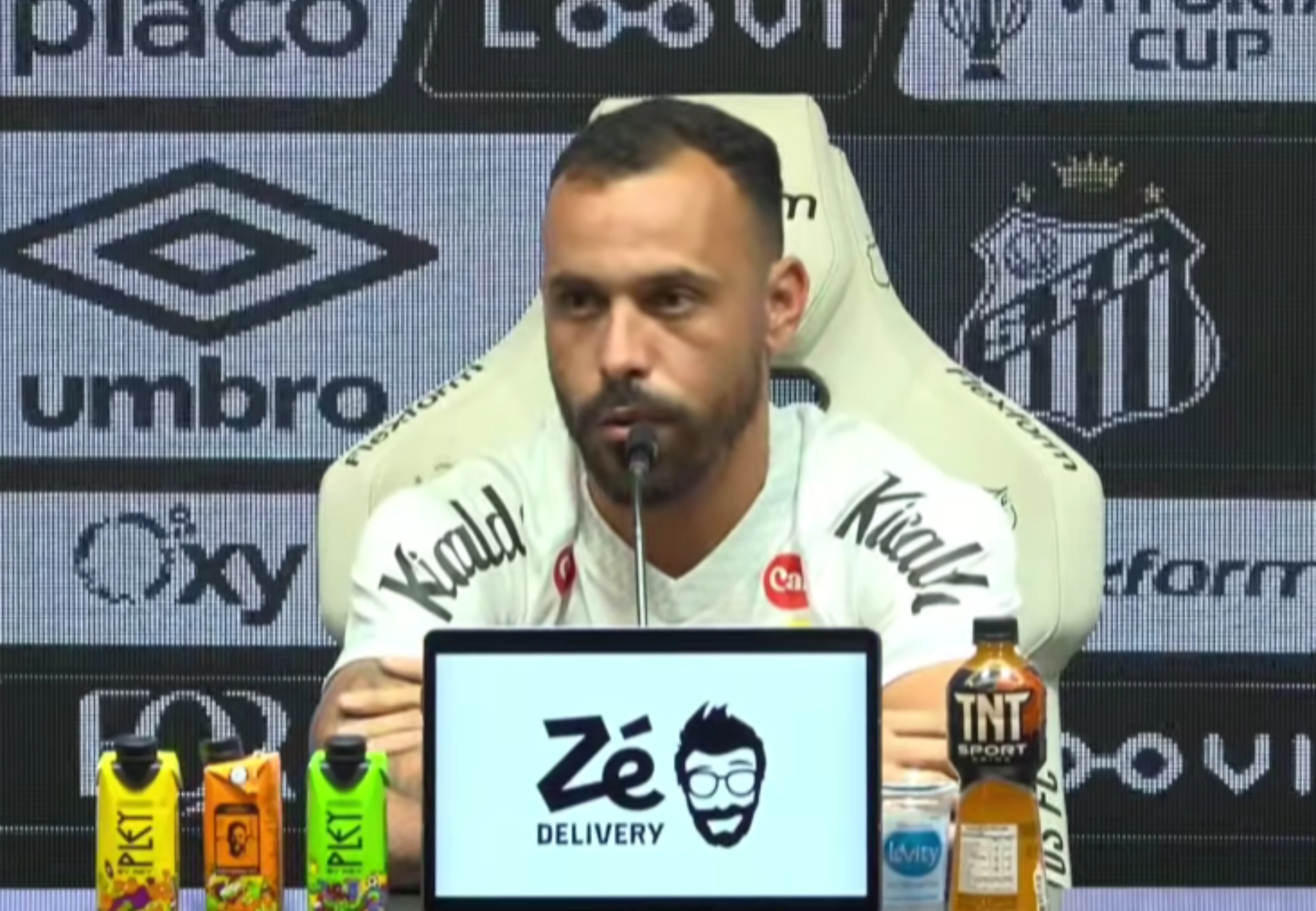 Foto: Reprodução/Santos TV O Santos apresentou oficialmente o atacante Moisés nesta sexta-feira (13), às 15h, no CT Rei Pelé. O jogador já havia atuado na derrota por 2 a 1 para o Athletico-PR, pela terceira rodada do Campeonato Brasileiro, mas concedeu sua primeira entrevista coletiva como atleta do clube apenas agora. Durante a apresentação, ele falou sobre a responsabilidade de defender o Peixe e o impacto de vestir uma camisa com tanta história.