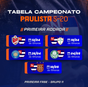 Pelo Paulistão Sub-20, o Nacional enfrentará uma série de adversários de peso, incluindo o Ibrachina, Portuguesa, Guarulhos GRU, Palmeiras e Flamengo de Guarulhos. Com jogos marcados tanto em casa quanto fora, o clube está pronto para mostrar seu talento e determinação em campo.