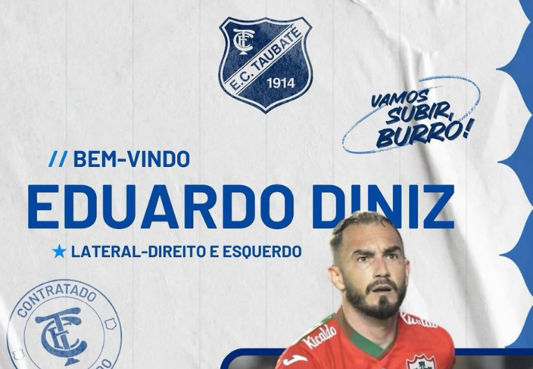 Foto: DivulgaçãoO Taubaté segue em fase de preparação para o Campeonato Paulista da Série A2, e um dos reforços para 2026 é o lateral-esquerdo Eduardo Diniz. Aos 36 anos, o jogador chega ao Burro da Central carregando experiência e três acessos conquistados na divisão, por São Bernardo, Portuguesa e Comercial.
