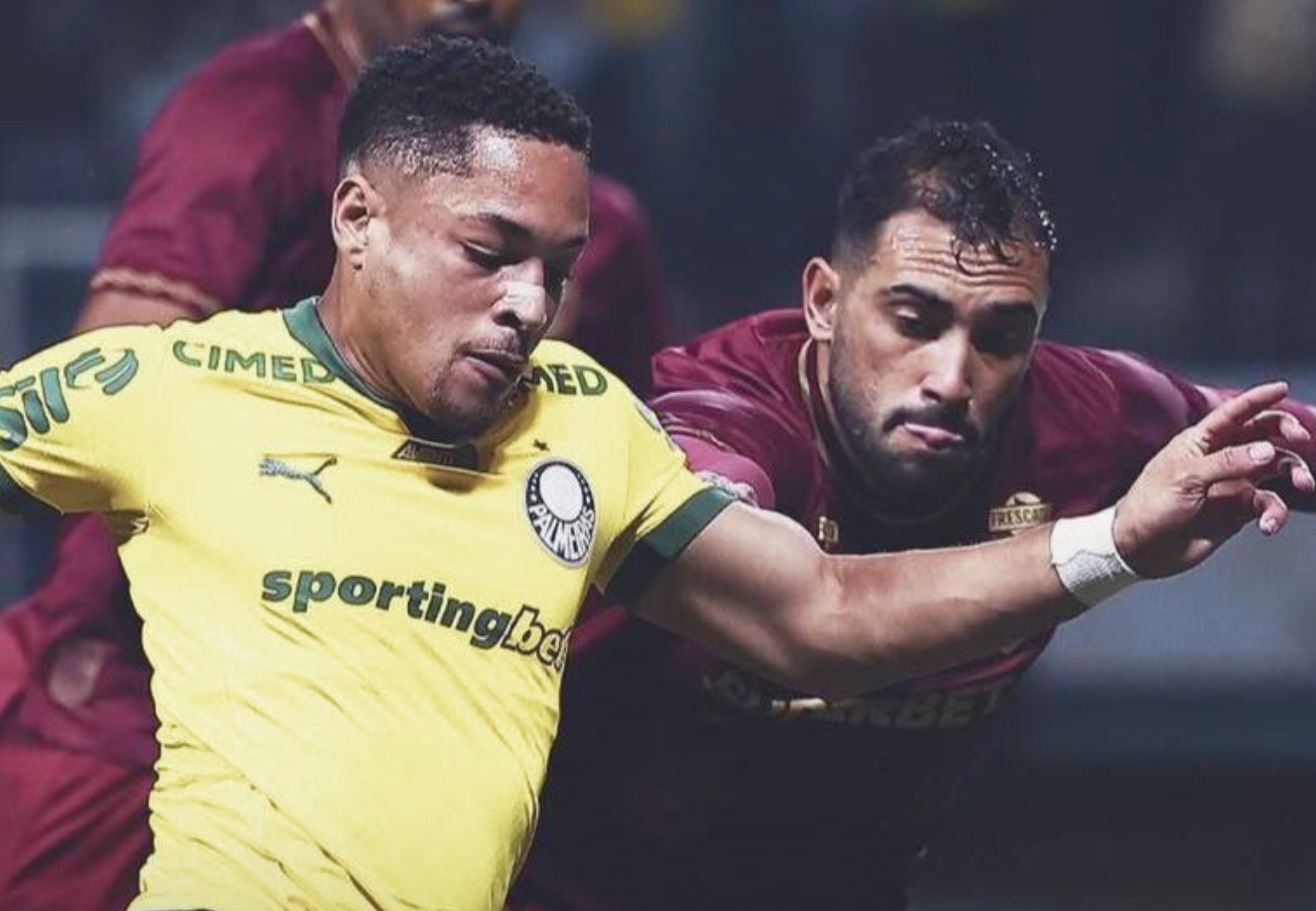 Em contra-ataque rápido aos 19 minutos, o atacante invadiu a área e obrigou Carlos Miguel a grande defesa. Aos 20, ele voltou a criar uma chance clara ao driblar Khellven e cruzar para Serna, mas Gómez salvou o Palmeiras novamente. A resposta do Verdão veio aos 24 minutos, em jogada individual de Vitor Roque, que driblou dois marcadores e bateu cruzado, tirando tinta da trave de Fábio. O jogo seguiu aberto e intenso.