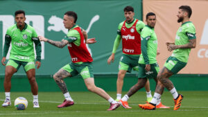 Na sessão de treino realizada na Academia de Futebol. Os atletas iniciaram com uma ativação no centro de excelência, em seguida os jogadores foram a campo e realizaram trabalhos técnicos e táticos sob o comando da comissão de Abel Ferreira.