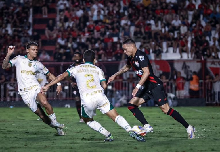 Três minutos depois, o Atlético voltou ao ataque. Romão fez jogada individual, trouxe para o pé direito e arriscou de fora. Weverton defendeu sem dificuldades.