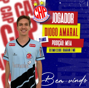 Divulgação/C.A. PenapolenseNa noite desta quinta-feira (25), o CAP anunciou a contratação do meia Diogo Amaral, de 21 anos, que estava defendendo o Guarani/MG.