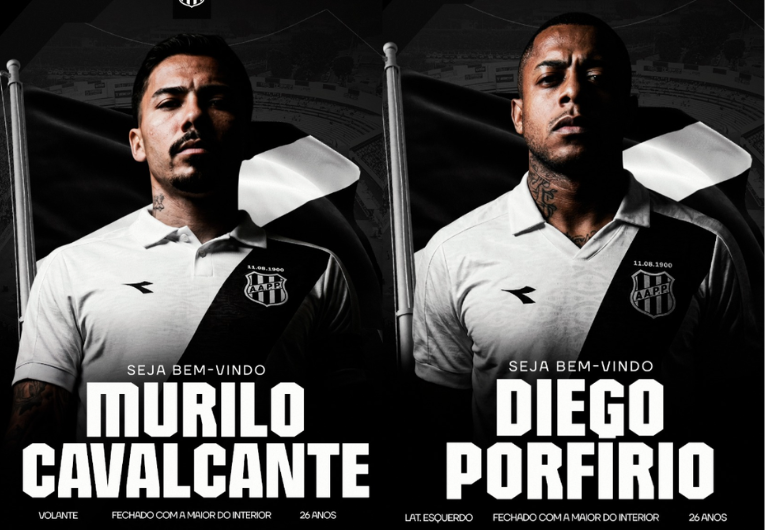 Foto: Divulgação A Ponte Preta anunciou nesta tarde de quinta-feira, 5 de março, a contratação de dois novos atletas para o seu elenco de 2026. Os nomes acertados são do lateral-direito Diego Porfírio e do volante Marcelo Calvacante.