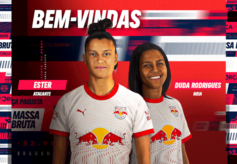 O Red Bull Bragantino anunciou na última sexta-feira (16) a contratação de mais duas jogadoras para a equipe feminina principal visando a temporada de 2026. A meio-campista Duda Rodrigues e a atacante Ester chegam para reforçar o elenco das Bragantinas.