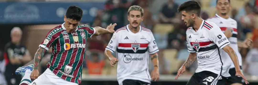 Foto: Divulgação/FluminenseCom o faro de gol imbatível do artilheiro argentino Germán Cano, o Fluminense venceu o São Paulo por 1 a 0, na noite desta quarta-feira (22), no icônico estádio do Maracanã. A partida marcou um encontro especial entre os atuais campeões da Copa Libertadores e da Copa do Brasil, com direito a uma troca de faixas antes do apito inicial.