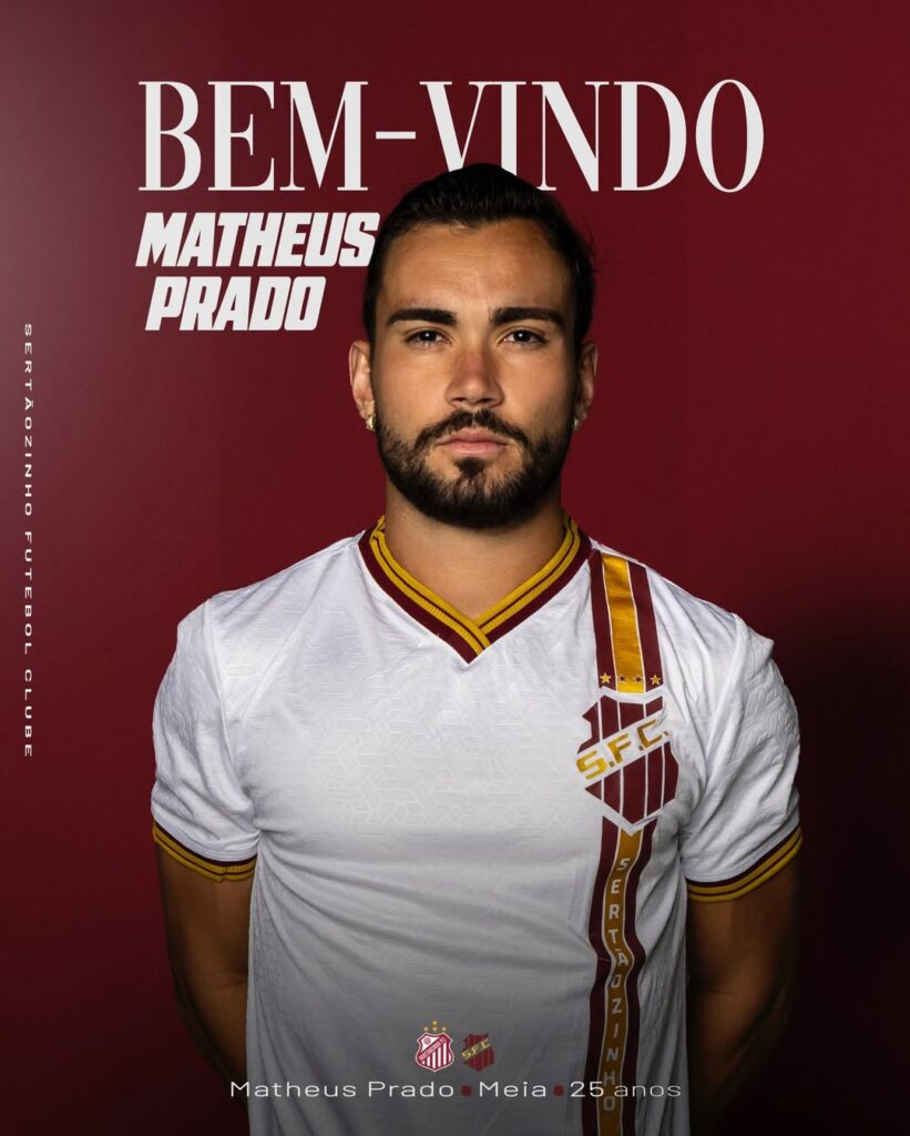 Para o meio-campo, o clube acertou a contratação de Prado, de 25 anos. Formado nas categorias de base do Botafogo-SP, o jogador acumulou passagens por Monte Azul, Francana, Mamoré-MG e Itabaiana ao longo da carreira. Na última temporada, vestiu a camisa do Comercial, onde disputou a Copa Paulista.