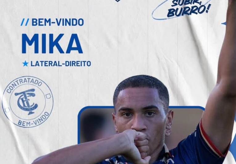 O Taubaté confirmou nesta terça-feira, 4, a contratação do lateral-direito Mika, de 23 anos, para a disputa do Paulista da Série A2 de 2026. O jogador, que também pode atuar como volante, é o segundo reforço anunciado pelo clube nesta pré-temporada.