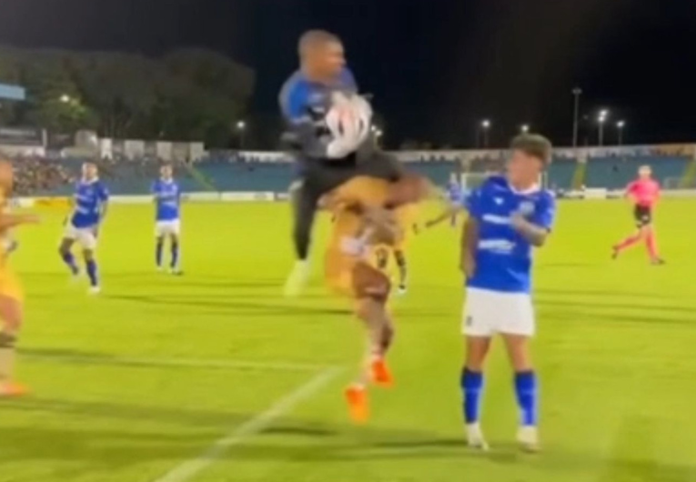 Na tentativa de afastar a bola, o goleiro do São José saiu de forma contundente e acertou o atacante Gustavo Alexandre, do Netuno. O impacto foi imediato e o jogador caiu desacordado no gramado, gerando preocupação imediata entre atletas e comissões técnicas.