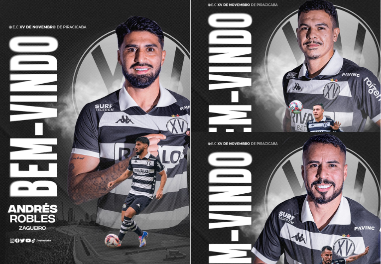 O XV de Piracicaba anunciou três reforços para a sequência da temporada e da disputa do Campeonato Paulista Série A2. O clube confirmou as chegadas do lateral-direito Arlen, do meio-campista Mossoró e do zagueiro chileno Andrés Robles, que já passaram a integrar o elenco quinzista.