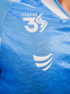 O uniforme também traz o selo do Terra Futebol Clube, projeto que utiliza o esporte para difundir mensagens de conscientização ecológica. Na parte interna da barra, a inscrição “Reciclamos e preservamos” complementa a proposta sustentável.